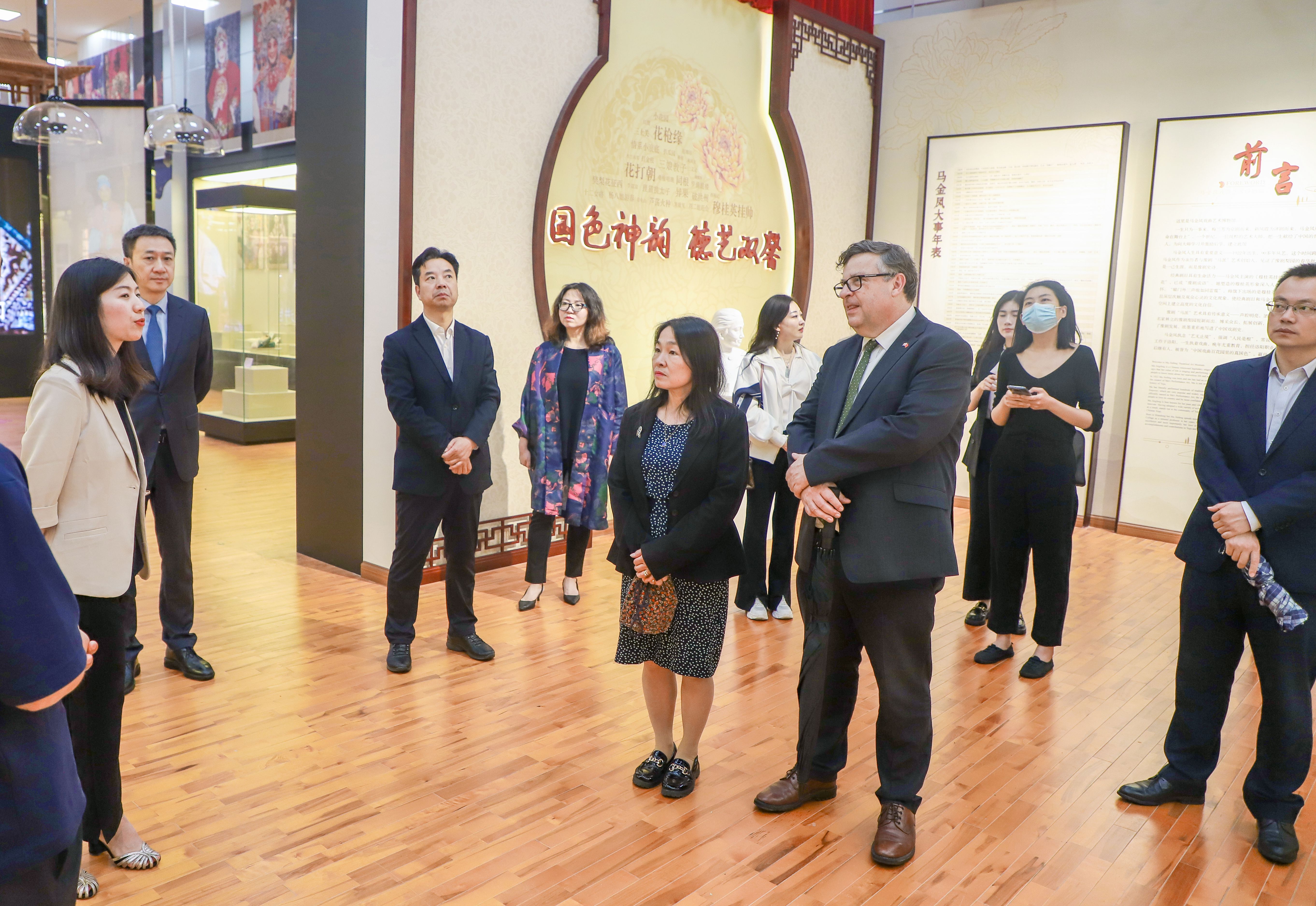 会后,麦多明先后参观了马金凤戏曲艺术博物馆、剪纸艺术研究社、文物修复实训室、考古探掘实训室等。
