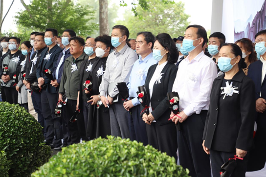安葬仪式上,全体默哀,李树建、蒋愈红、吕青共同为马金凤先生纪念碑揭碑,马金凤先生亲属代表为纪念碑擦碑。