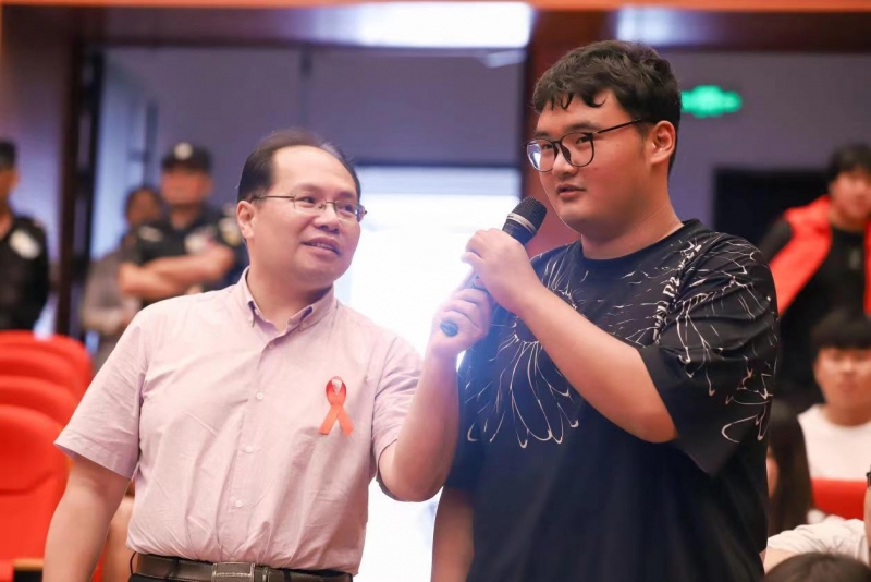 河南省疾病预防控制中心性病艾滋病防治研究所监测与管理室主任李宁、河南省疾病预防控制中心性病艾滋病防治研究所主任医师马彦民、洛阳市疾病预防控制中心副主任朱鑫与师生代表面对面沟通交流,通过提问、互动等方式详细解答了艾滋病基本情况、学生艾滋病感染现状、怎样预防艾滋病等防艾抗艾知识。