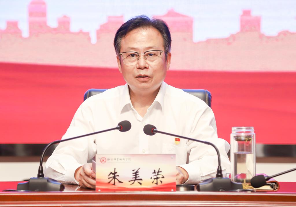 朱美荣在讲话中表示,我们在这里召开会议,庆祝中国共产党成立102周年,共同回顾党的光辉历程,传承党的光荣传统,对两年来在推进学校改革、发展和稳定工作中涌现出的先进基层党组织、优秀共产党员、优秀党务工作者进行表彰,激励全校上下不忘初心、牢记使命,见贤思齐、奋勇争先,以昂扬的姿态、拼搏的状态,努力开创建设“双高校”、奋力“奔职大”工作新局面。一要提高政治站位,进一步坚定党对学校工作的全面领导。要坚持政治领航,持续提升政治执行力;要坚持思想铸魂,持续提升思想引领力;要坚持强基固本,持续提升基层组织力;要坚持示范引领,持续提升标杆影响力;要坚持人才强校,人才引育量质齐升;要坚持正确用人导向,持续提升干部队伍能力素质;要坚持全面从严治党,形成风清气正的政治生态;要坚持守正创新,持续提升办学治校能力。二要强化党建引领,奋力开创党的建设工作新局面。要持之以恒把方向,全面增强党的政治领导力;要锲而不舍筑信仰,全面提高党的思想引领力;要坚持不懈固根基,全面强化党的组织力;要驰而不息强作风,锻造高素质专业化干部队伍。三要坚持务实笃行,推动学校各项工作再上新台阶。要深入学习宣传贯彻党的二十大精神,全力以赴做好招生就业工作,争分夺秒推进学校项目建设,要鼓足干劲加快新校区二期建设,要全力做好“双高校”验收准备,要一以贯之筑牢校园安全防线。