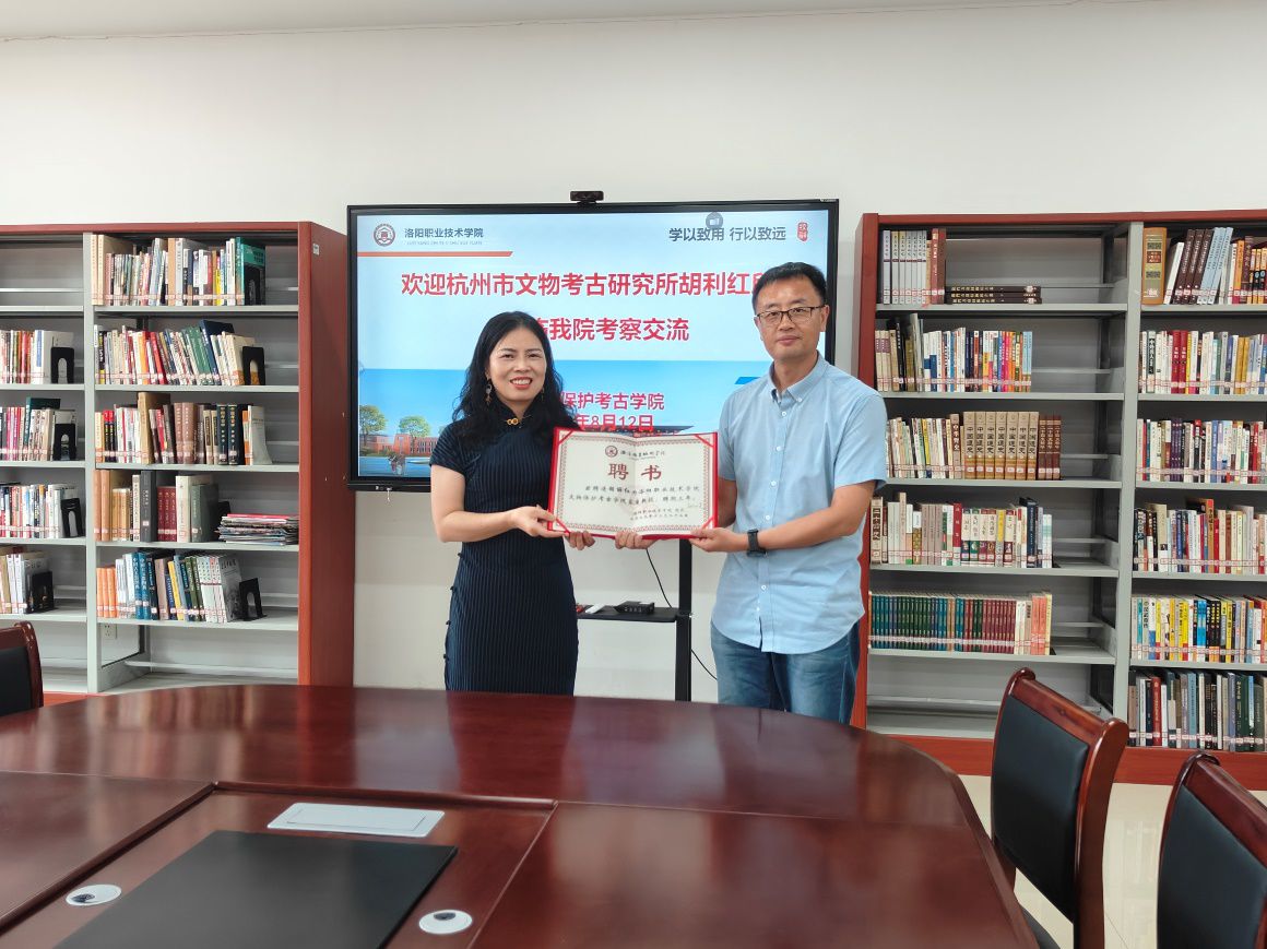 8月12日上午,杭州市文物考古研究所所长胡利红到文物保护考古学院考察交流,文物保护考古学院院长杨刚亮、党总支副书记赵博参加活动。