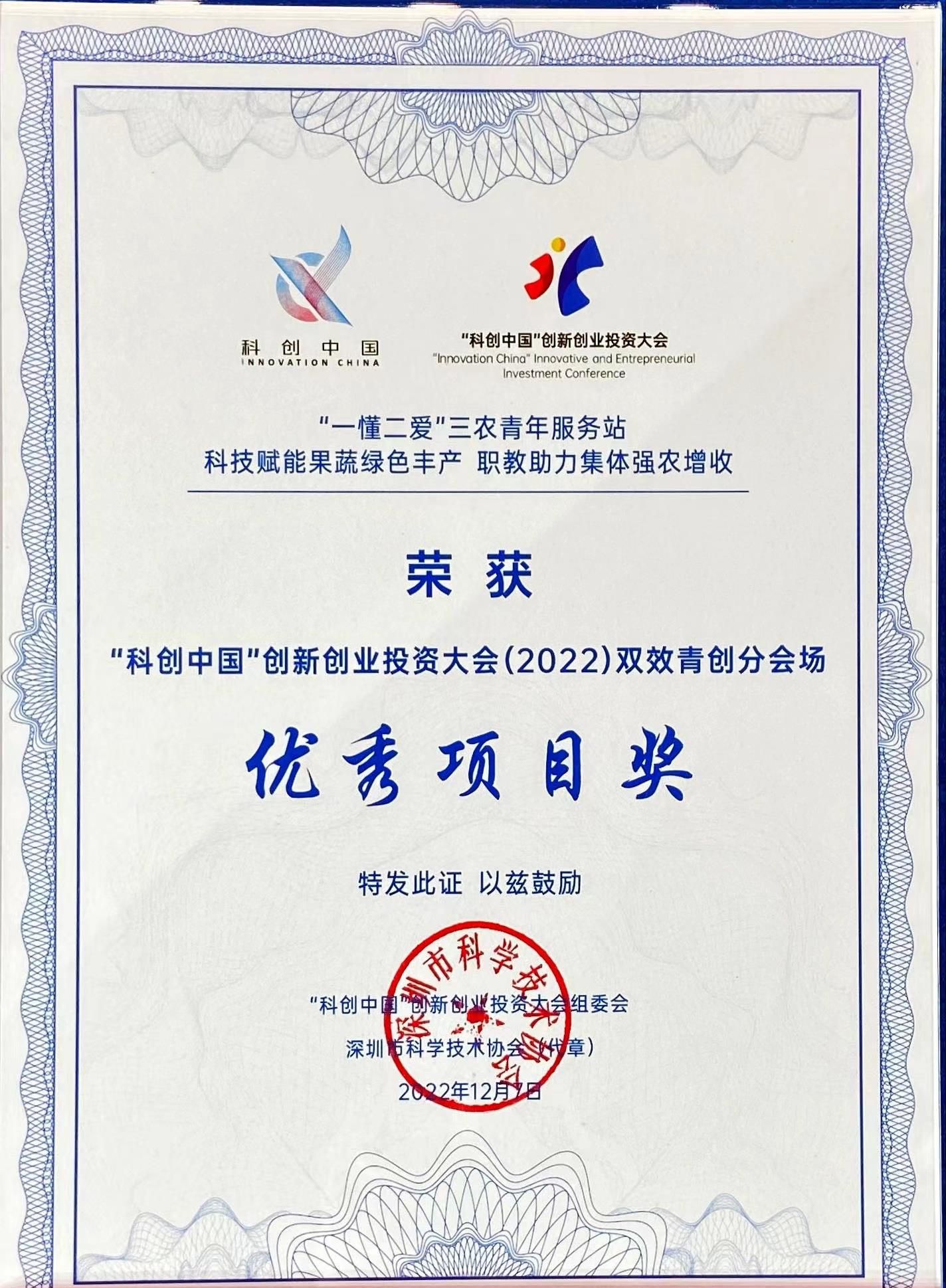 2月24日,在深圳举行的“科创中国”创新创业投资大会暨大湾区科技大会上,我校助农项目《“一懂二爱”三农青年服务站》入选双效青创类全国十强,并荣获优秀项目奖。