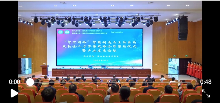 第六届中国·河南招才引智创新发展大会和第三届中国·河南开放创新暨跨国技术转移大会洛阳专场“智汇河洛”智能制造与生物医药政校企人力资源战略合作签约仪式暨产业发展论坛在洛阳职业技术学院举行。