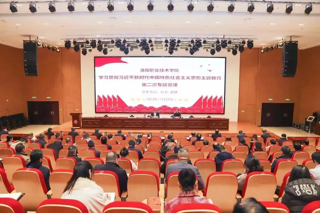 11月24日,洛阳职业技术学院学习贯彻习近平新时代中国特色社会主义思想主题教育第二期读书班专题党课在大学生活动中心一楼学术报告厅举行。党委书记、校长赵健作专题辅导。校领导任晓平、韦元民、余江宁、李保安、张志友、邓卫国、刘航、孙建勋、于幸福出席专题党课,校属各单位负责人、全校副科级以上干部、附属医院主要负责人参加专题党课,其他教职工线上收听收看。会议由党委副书记任晓平主持。