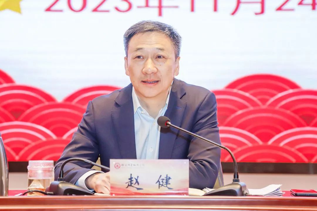 赵健指出,洛阳职业技术学院进入国家级“双高”、实现“奔职大”目标,必须在转变观念、提升能力和推动工作上下功夫。要确立“跳出洛职看洛职”的视野格局,看到差距、认清大势、找准定位;要改变“交差式抓落实”的思维习惯,深度研究、主动谋划、以点带面;要打破“按固有套路办事”的思维定势,敢于解放思想、树立“有解”思维、善于借鉴经验;要强化“用市场手段推动发展”的工作理念,探索混合所有制改革、以市场化手段办会办赛、用市场化思维推动科研成果转化;摒弃“习惯于高高在上”的“官本位”思想,践行服务育人理念,为师生办实事办好事。