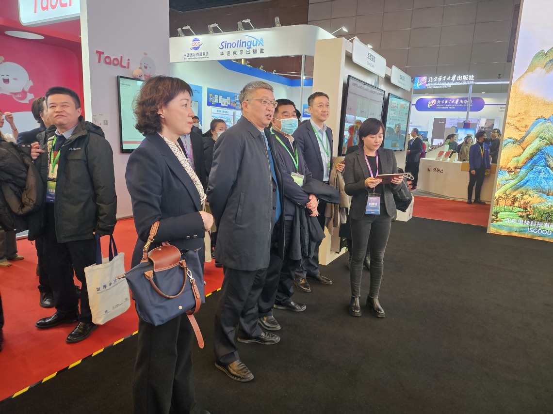 赵健还和河南省教育厅相关领导一起参观了世界中文大会语言展,在“资源与数字化展区”观看了中国十大传世名画《千里江山图》的数字化展示。在“语言教育的数字化智能化变革”论坛上,赵健与北京大学专家就数字化促进教育教学改革与创新进行了交流。赵健表示,洛阳职业技术学院高度重视国际化和数字化建设,通过两者的有机结合赋能学校内涵式发展,开辟职业教育发展新赛道,加快推动优质资源服务专业建设和教育能力提升。