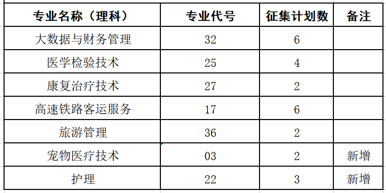 由于退档和追加计划,我院参加征集的专业及计划数如下: