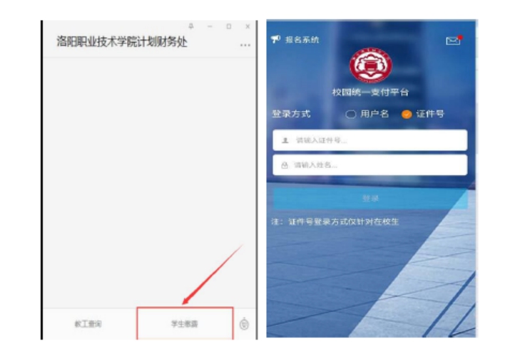 第一步:通过手机微信关注“洛阳职业技术学院计划财务处”公众号