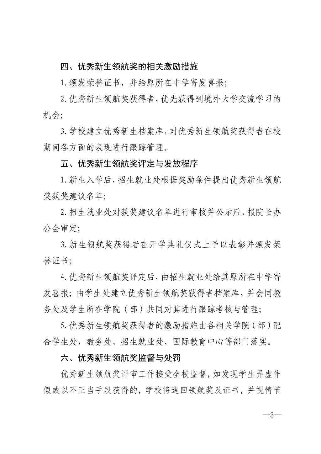 关于《优秀新生领航奖奖励暂行办法》的通知