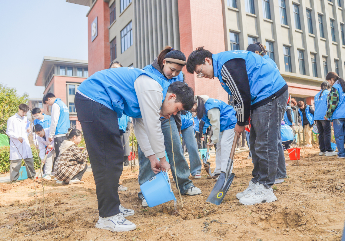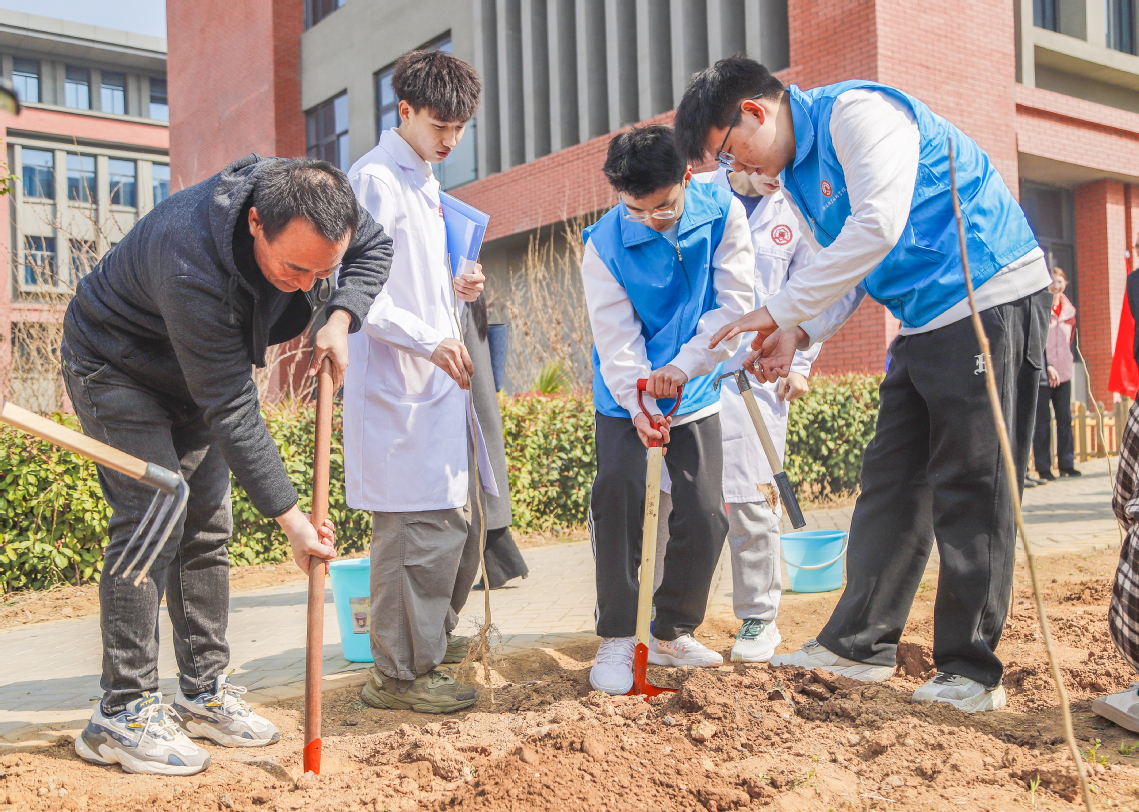 开园仪式上,“百草园”学生社团学生集体集体诵读《素问·四气调神大论》节选传承中医文化,校领导和广大师生一起在百草园内种植杜仲、连翘、山茱萸等中草药植物300余棵。