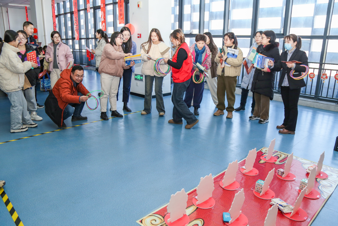 此次活动由图书馆和校工会联合主办,十余家数字资源服务商在现场开展电子期刊、考试资源库、多媒体网络课程资源、人工智能咨询助手等数字资源推广及体验活动。活动现场,还进行了写春联送祝福、木雕年画制作、龙年趣味游戏、戏曲体验、经典诗词挑战,以及“打卡数据库集章送礼品”等趣味活动,吸引了众多师生到场参与其中。