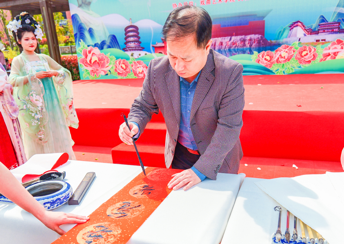 启动仪式上,“编钟水袖”的舞者用轻盈的舞步和优雅的身姿展现了国风舞蹈的韵味;汉服走秀“霓裳华裳”中,学生们身着汉服,款款走来,传递着汉服的风采;洛阳职业技术学院书法家协会的老师现场挥毫泼墨,创作书法作品,展示了中国传统书法的独特魅力。