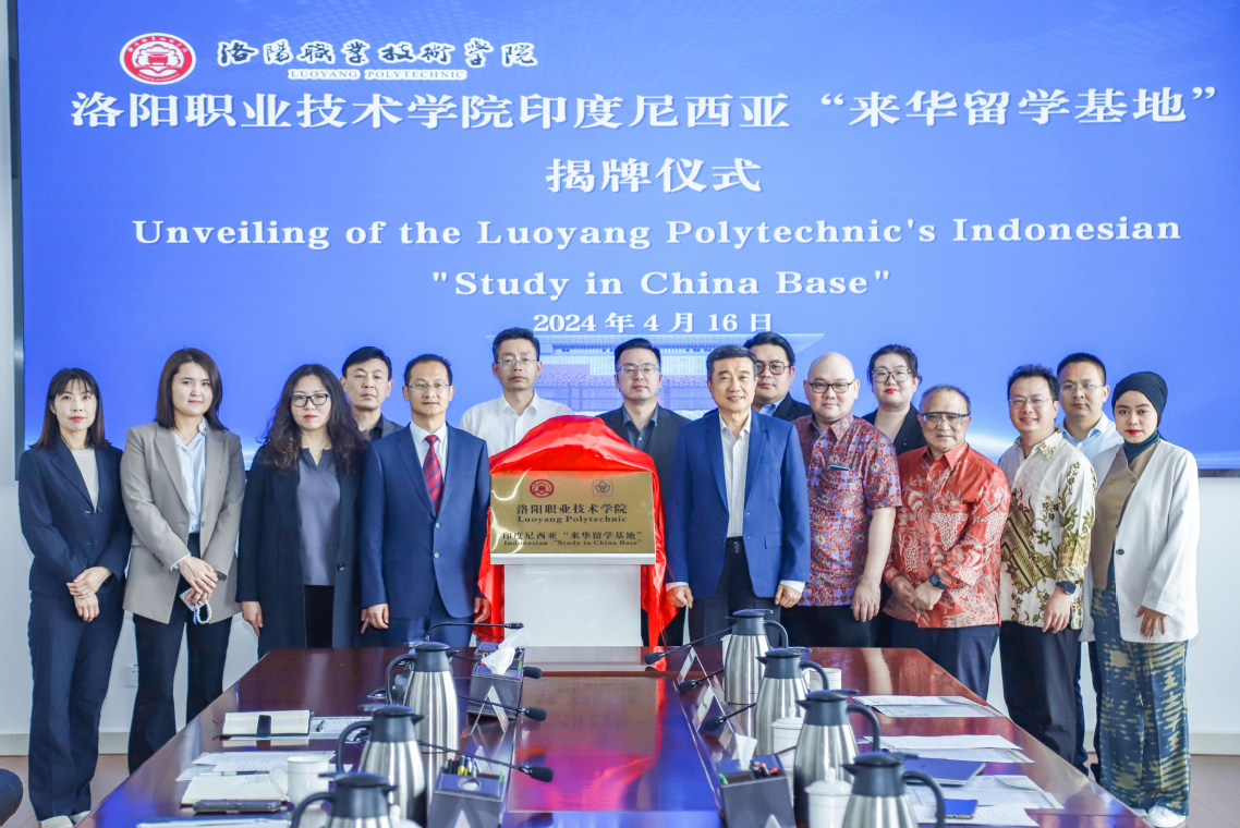 4月16日上午,洛阳职业技术学院印度尼西亚“来华留学基地”及印尼总统大学“生源培训基地”揭牌仪式在图书馆801会议室举行。