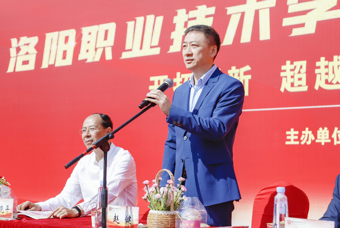 李保安在致词中表示,党的二十大报告指出,要“广泛开展全民健身活动,加强青少年体育工作,促进群众体育和竞技体育全面发展,加快建设体育强国。”学校始终秉持五育并举、三全育人理念,深化体育教学改革,完善体育设施建设,营造浓厚的体育文化氛围,助力师生在体育锻炼中享受乐趣,增强体质、健全人格、锤炼意志。希望广大运动员在比赛中遵守规则、尊重裁判、文明参赛、友爱互助,呈现出洛职师生的高素质、高风格和高水平,实现运动成绩与精神文明的双丰收。希望全校师生将体育运动融入到日常生活,让身心健康成为不懈追求,将体育运动中蕴含的体育精神转化为推动学校“双高校”建设和职教本科建设的强大动力,奋力开拓学校高质量发展新局面。