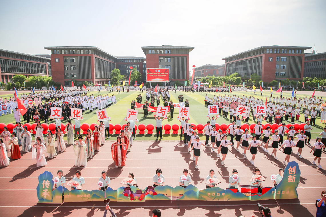 副校长韦元民宣布仲裁委员会名单,副校长张卫国主持开幕式。国旗、校旗、会旗、仪仗队、彩旗队、裁判员代表队、机关代表队、各学院代表队依次入场,各学院分别进行了极具专业特色的精彩展演,并进行了团体操和千人八段锦表演。裁判员代表、运动员代表分别进行宣誓。