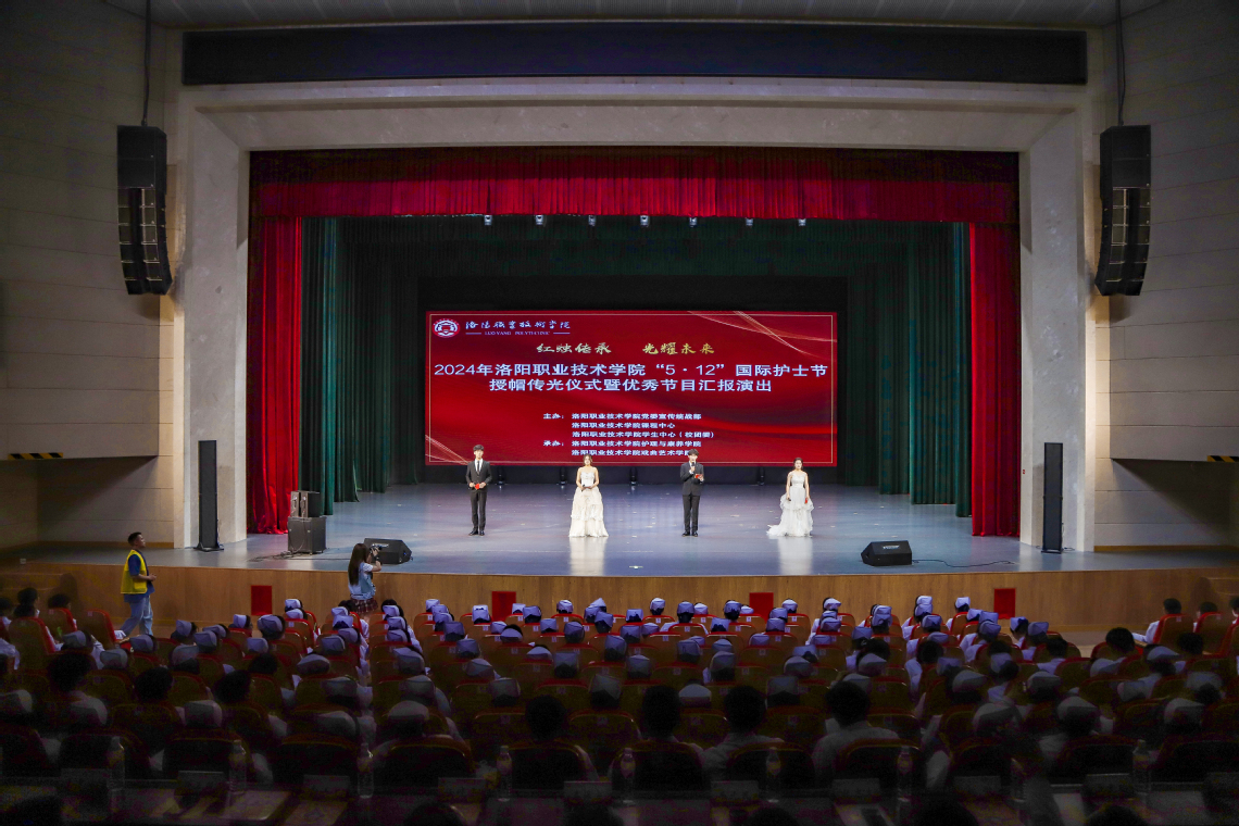 5月9日,我校2024年“5·12”国际护士节授帽传光仪式暨优秀节目汇报演出在洛职大剧场举行。校长李保安出席活动并致辞。校领导任晓平、韦元民、余江宁、张志友、邓卫国、刘航、于幸福出席活动。