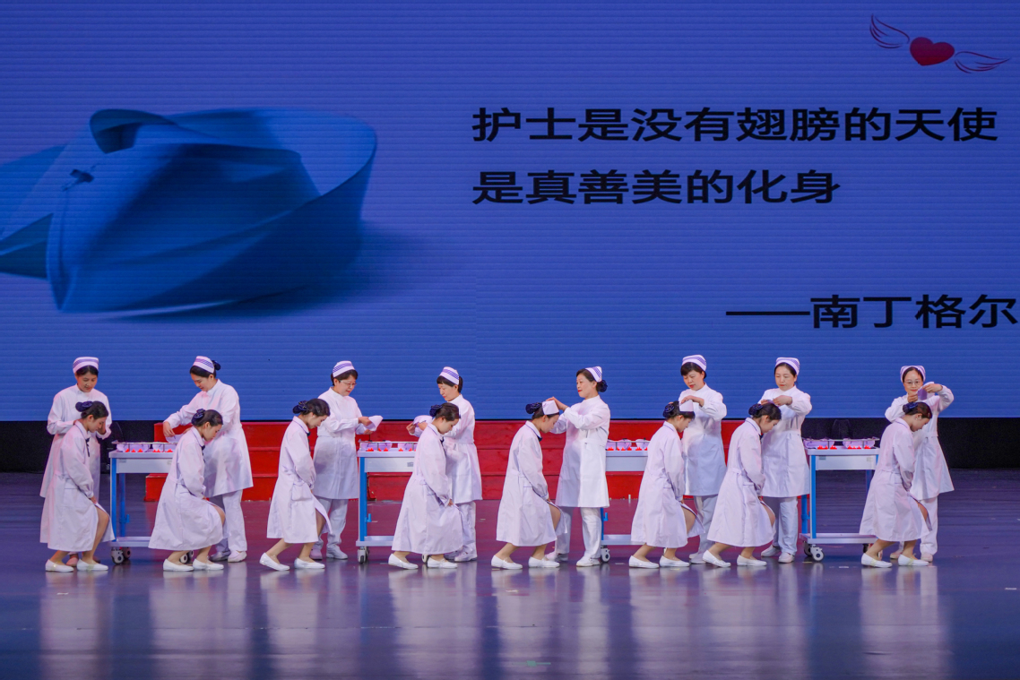 现场还进行了成人心肺复苏电除颤技术等技能操作展示,并通过情景剧、歌舞表演、英文合唱等节目表达对护理人员的崇高敬意。