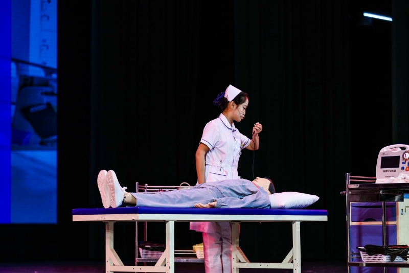 现场还进行了成人心肺复苏电除颤技术等技能操作展示,并通过情景剧、歌舞表演、英文合唱等节目表达对护理人员的崇高敬意。