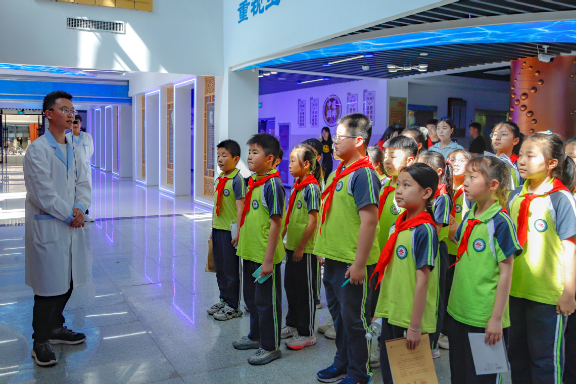生命科学馆内,学生讲解员们风趣的讲解让小学生们领略了生命科学的奥秘,学习了与人类生命相关的科学研究成果,深刻领会了劳动创造价值的内涵。