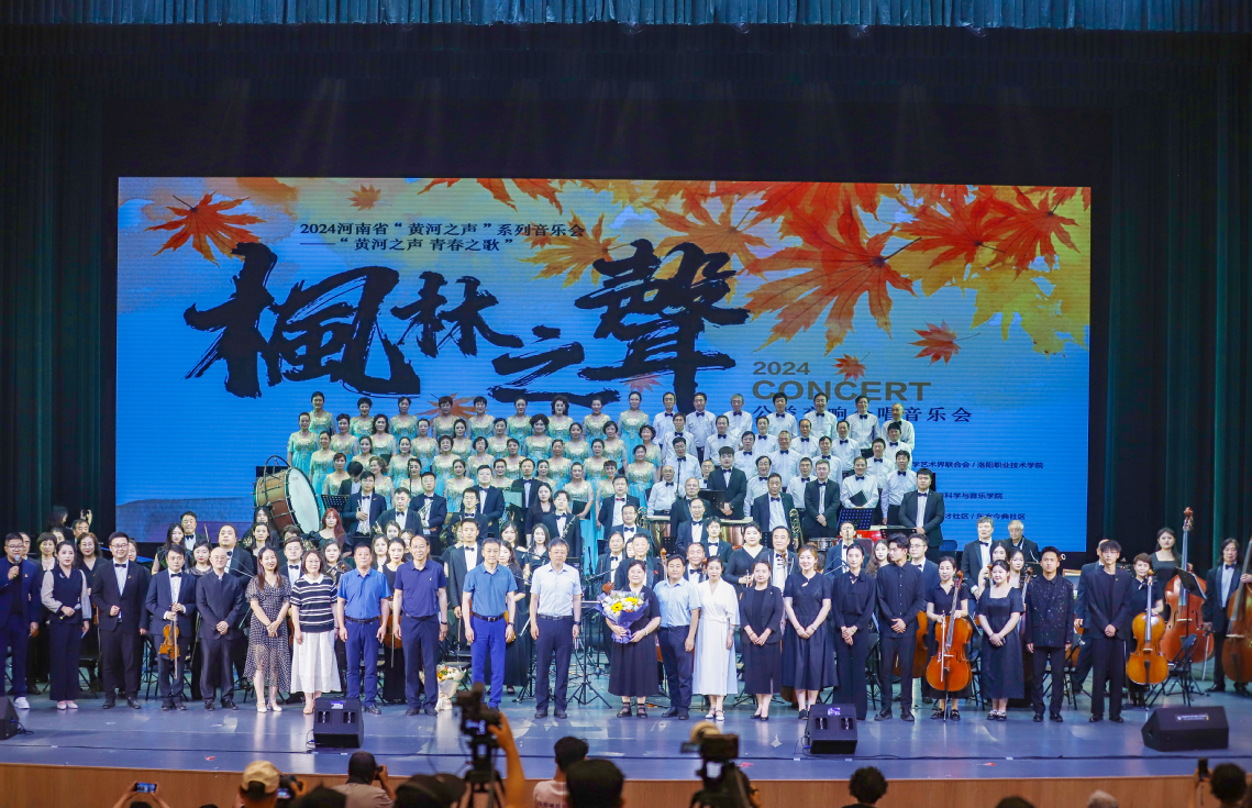 作为2024年“黄河之声”系列音乐会中的其中一场,“黄河之声 青春之歌”枫林之声公益交响合唱音乐会由洛阳市委宣传部指导,洛阳市文学艺术界联合会、洛阳职业技术学院主办,洛阳市音乐家协会、洛阳职业技术学院戏曲艺术学院、洛阳市枫林合唱团、洛阳爱乐乐团承办。在将近3个小时的时间里,洛阳市枫林合唱团和洛阳爱乐乐团共同合唱演奏了10余首中外名曲,为现场观众奉上了一场音乐盛宴。