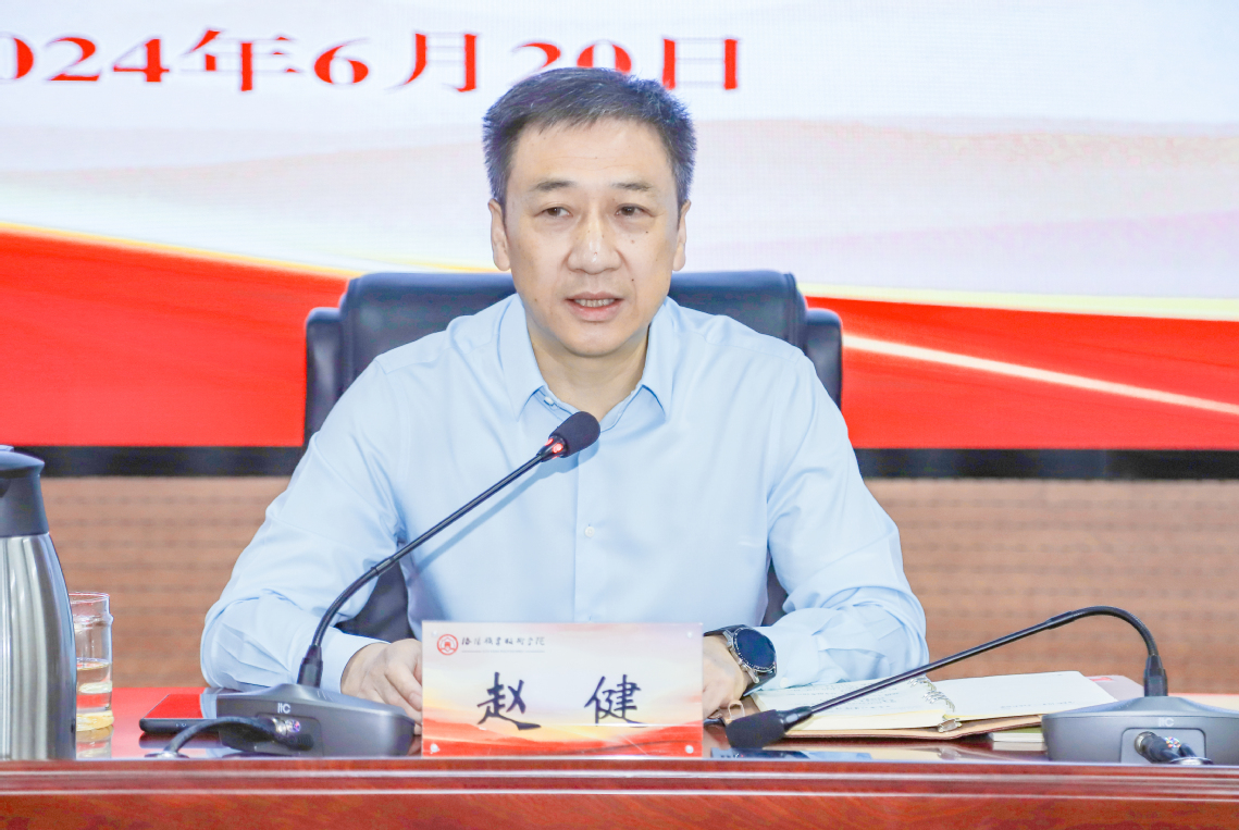 赵健强调,党员领导干部要带头提升政治能力,做对党忠诚的表率。加强政治历练,积累政治经验,推动自身政治能力与担任的领导职责相匹配,做到对标看齐、表里如一、令行禁止,贯彻落实党的教育方针和立德树人根本任务,任何时候任何情况下都保持政治清醒,不踩红线、越底线、碰高压线,做政治上的明白人。要带头树立正确的政绩观,做为师生造福的表率。要把为师生造福作为最大的追求,倍加珍惜组织给予的重托,倍加珍惜干事创业的平台,实实在在为师生办些“小而美”民生实事。要对师生负责、对学校的长远发展负责,坚持从实际出发想问题、作决策、办事情,增强战略定力,善始善终、善作善成,推动学校“双高校”和职教本科建设再上新台阶。要带头锤炼过硬作风,做务实担当的表率。要带头发扬党内民主,带头坚持集体领导,落实好民主集中制,营造人心齐、劲头足、合力强,和衷共济、和谐顺畅的发展氛围。要勇于担当担责,带头真抓实干,坚持求真务实、说内行话、办内行事,真正把大事抓具体、抓到底、抓到位。要带头严守纪律底线,做严格自律的表率。要正心明道、怀德自重、守住小事小节,解决好“不想”这个根本。要把好交往关、亲情关、兴趣关,守住道德高线,把全部心思和精力用在为师生办实事上,以良好德行引导学风校风、赢得师生信任。