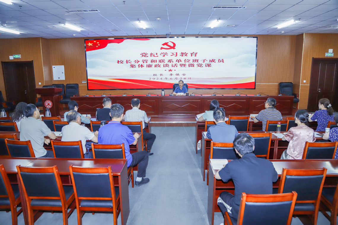 按照学校党纪学习教育工作安排,6月24日下午,校长李保安向分管和联系单位班子成员开展集体廉政谈话,并讲授微党课。
