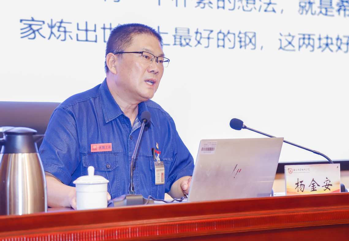 杨金安是河南省首位被评为大国工匠的炼钢工人,曾获“大国工匠2019年度人物”“全国五一劳动奖章”“全国技术能手”“中国工会十七大代表”等荣誉。他以“把两块好‘钢’献给国家助力谱写制造强国新篇章”为题,详细讲述了自己从一名普通工人成为“大国工匠”的心路历程。
