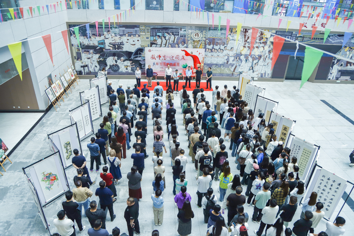 为落实立德树人根本任务,弘扬中华优秀文化传统,更好地展示师生才艺,抒发爱国情怀,营造良好的校园文化氛围,在新中国成立75周年之际,校关工委、党委宣传统战部、教师中心、图书馆、校书法家协会、校美术家协会组织举办了“感师恩 迎国庆”师生书画展。