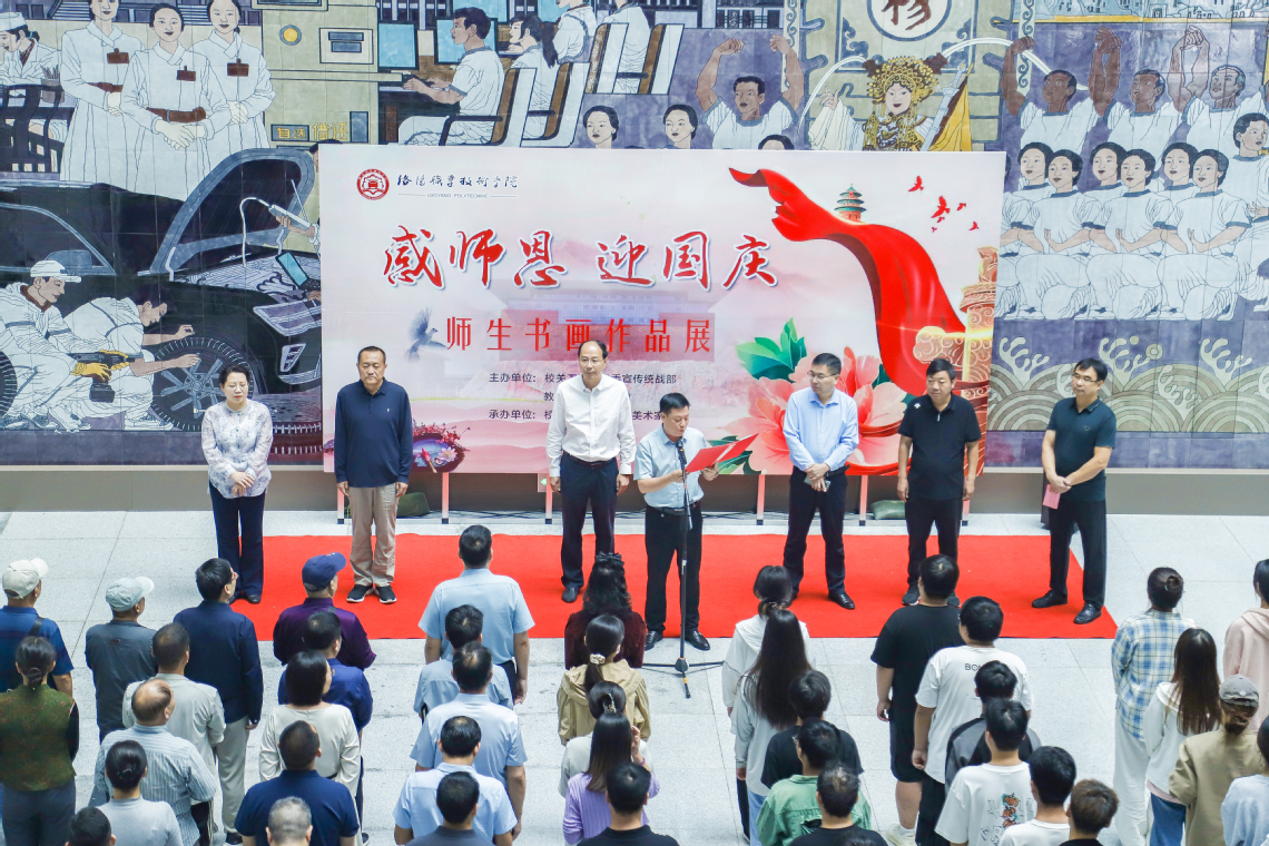 校领导、校关工委执行主任邓卫国在致辞中表示,此次书画展以艺术为载体充分表达了洛职师生的爱国情怀,希望广大师生以此次活动为契机,更加热爱艺术、追求艺术、礼赞新时代、奋进新征程,为学校建设和发展、为推动社会主义文化繁荣兴盛和实现中华民族伟大复兴贡献力量。