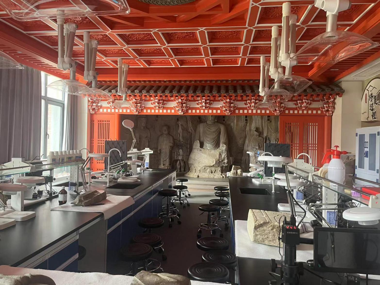 已建设有文物修复与保护实训中心、考古探掘技术实训基地,面积达3000余平方米,包括金属陶瓷器修复、书画装裱、古籍修复、陶瓷器制作、文物展陈中心、文物信息采集与处理中心、考古探掘技术实训室、文物修复虚拟现实协同实训中心、文物考古虚拟现实仿真实训中心等13个实训室,大师工作室1个,拥有500余个工位,各类先进仪器和设备300余件,总价值1000余万元,生均设备价值高达3万余元,能满足陶瓷、金属、纸质文物修复、考古探掘、虚拟仿真等实训需要,在国内院校处于一流水平。新规划建设龙门石窟文化展示中心、文物考古展示馆即将开展建设。学校对高水平专业群的资金投入较为充足,每年给予文物保护类专业的资金投入不设上限,为专业发展提供了坚实的资金基础。
