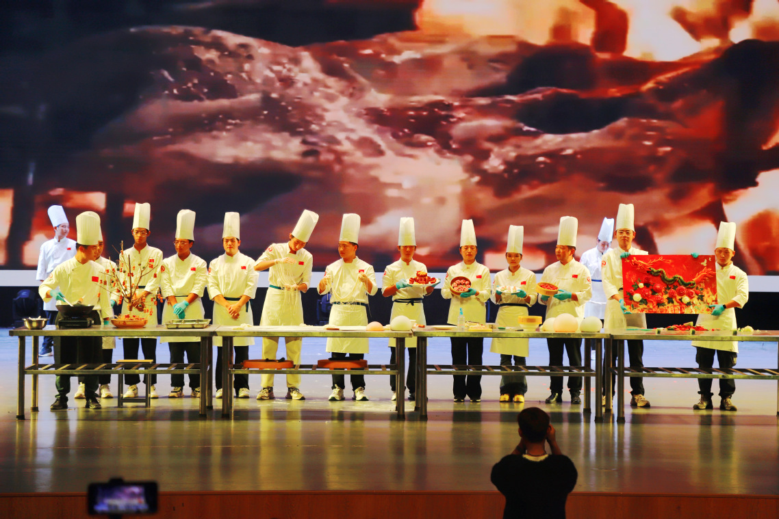 在展演过程中,高速铁路客运服务、酒店管理与数字化运营、旅游管理、烹饪工艺与营养、文化创意与策划、传播与策划专业的学生和老师在舞台上集中展示了高铁礼仪操、长嘴壶茶艺、传统插花、调酒与新式茶饮、导游讲解、台式茶艺、剪纸文创技艺、等专业特色技能。