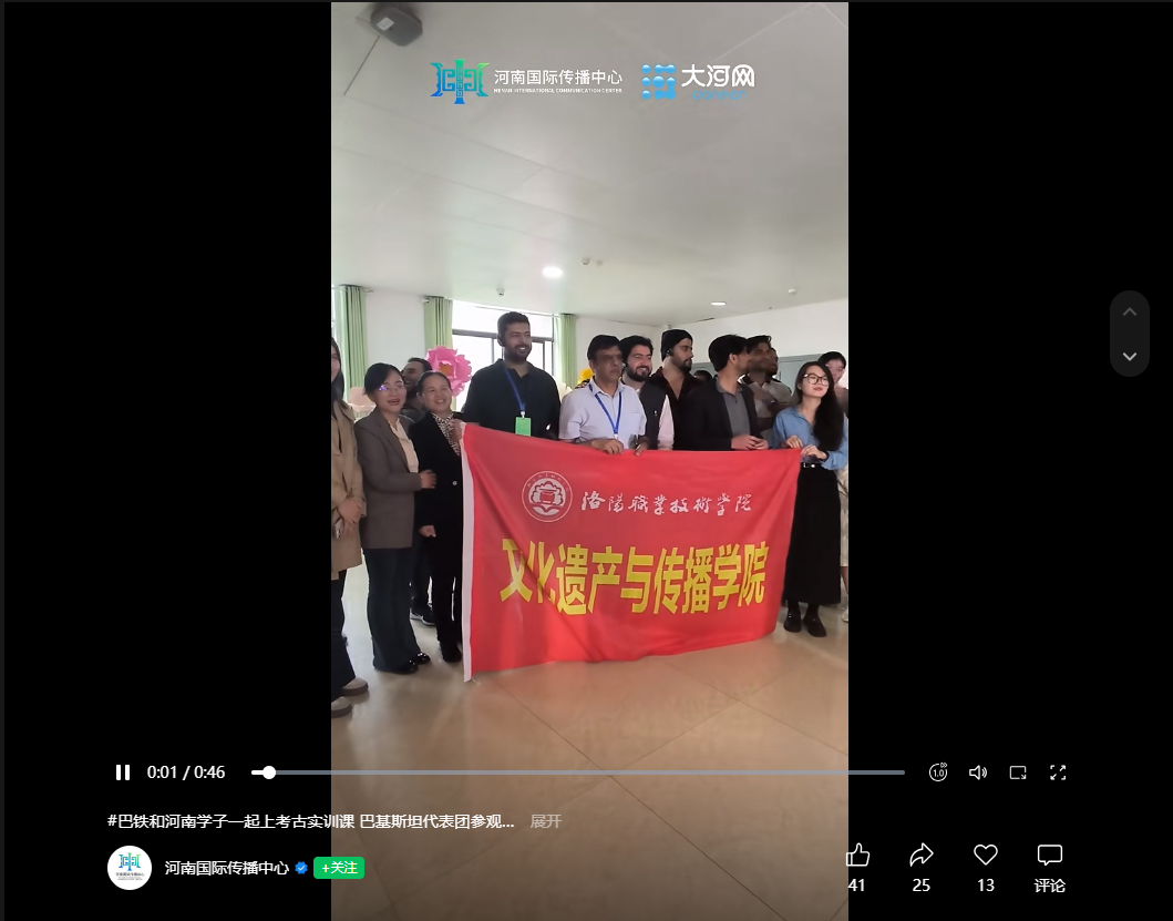 河南国际传播中心视频号:巴基斯坦代表团参观洛阳高校,和同学们一起上考古实训课!在亲自学习并应用传统考古手段和现代考古技术后,他们对中国的考古教育有了哪些新认识?戳视频,一起看!