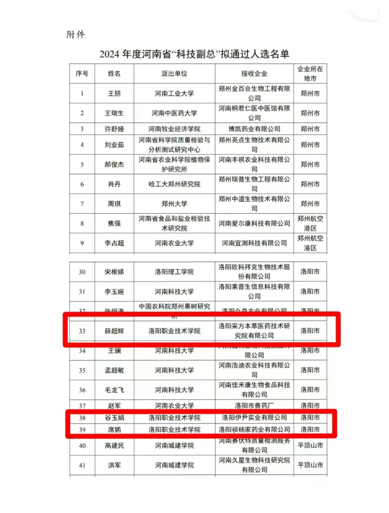 近日,河南省科技厅公示了河南省2024年“科技副总”拟通过名单。我校食品与药品学院博士薛超辉、谷玉娟和席鹏成功入选。