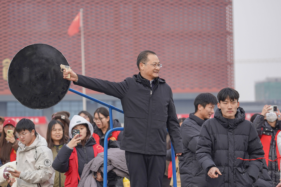 12月19日,我校第四届校园迷你马拉松比赛在伊滨校区求知广场拉开序幕,我校体育运动委员会主任、校长李保安出席活动并为比赛鸣枪开跑。