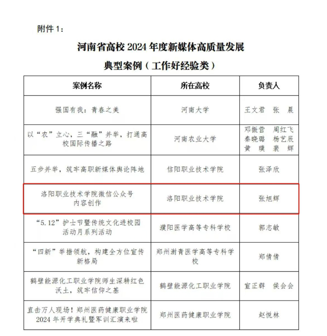 近日,河南省高等教育学会宣传教育服务中心、河南教育报刊社融媒体中心公布2024年度河南省高校新媒体高质量发展典型案例遴选结果。我校1个案例获评工作好经验类典型案例,1人入选先锋探索者类典型案例。