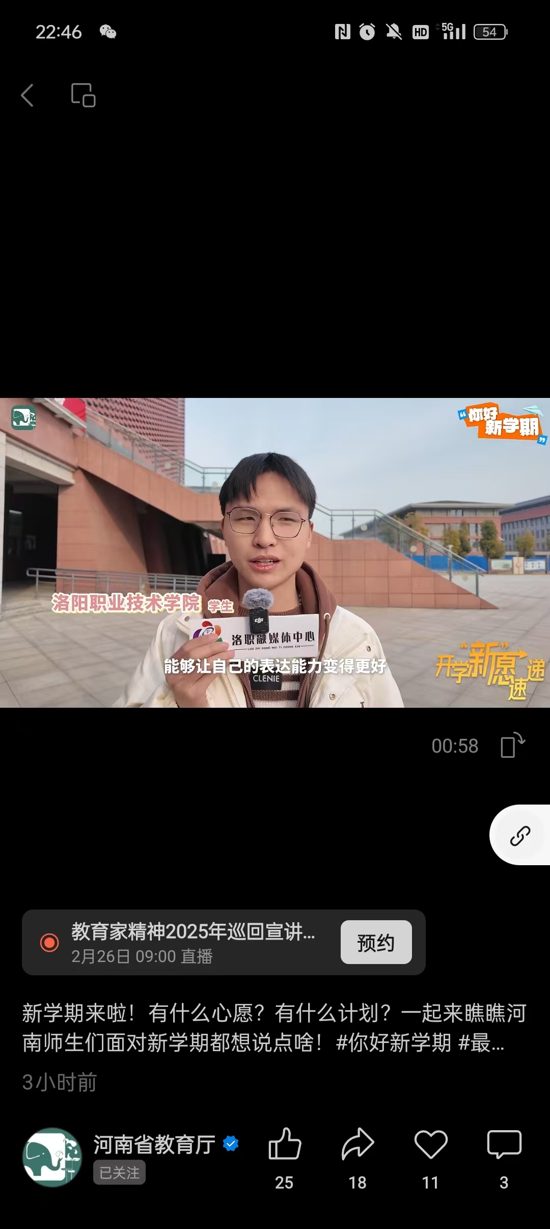 河南省教育厅视频号:新学期来啦!有什么心愿?有什么计划?一起来瞧瞧河南师生们面对新学期都想说点啥!