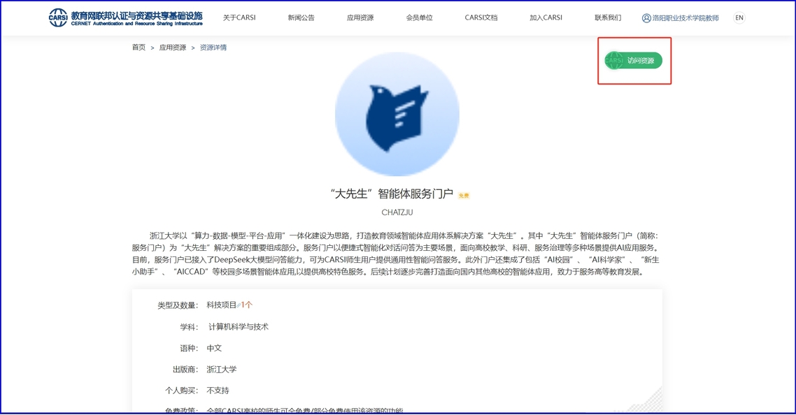 4.选择“大先生”智能服务门户,也可访问其他免费或试用资源。