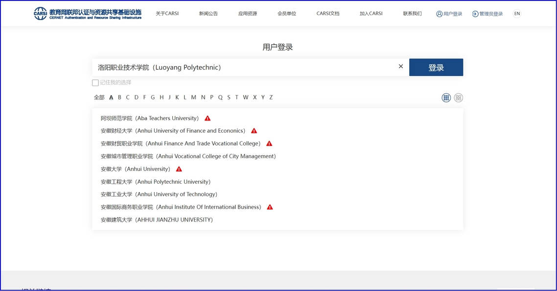 1.浏览器访问https://ds.carsi.edu.cn/login/index.html