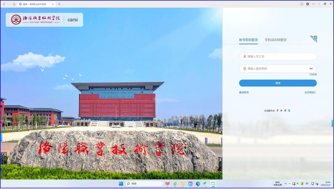 2.输入洛阳职业技术学院,点击登录。