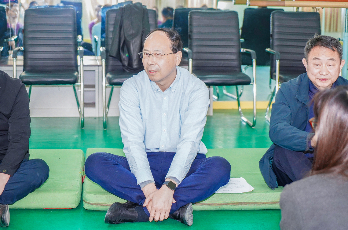 在舞蹈排练室内,任晓平和24级舞蹈表演303班同学们席地而坐,面对面亲切沟通,询问大家学习、生活中遇到的困难,同学们积极发言,讲述在学校期间的收获和感悟。优秀学姐也向大家分享了自己通过舞蹈学习不断成长的故事。