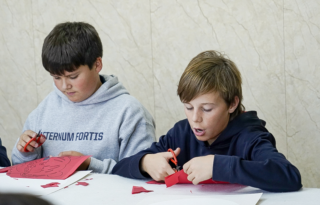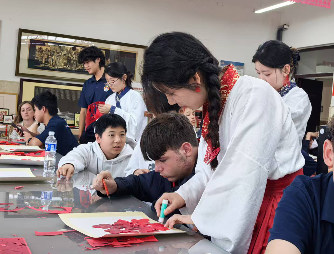 在文化遗产与传播学院非遗剪纸实训室,全国百强学生社团剪纸艺术研究社的师生指导着澳洲学生,用剪刀在一张张红纸上创作出了牡丹、哪吒等生动图案,成为了他们最珍贵的纪念品。