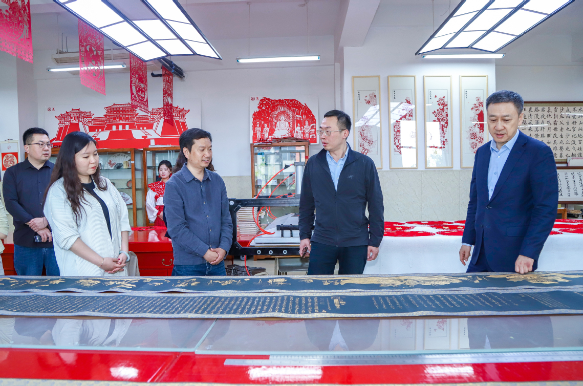 4月15日,中国外文局中国对外书刊出版发行中心副主任董彦、中国—东盟中心新闻公关部副主任王妍一行到我校考察特色项目和非遗项目,党委书记赵健陪同考察。