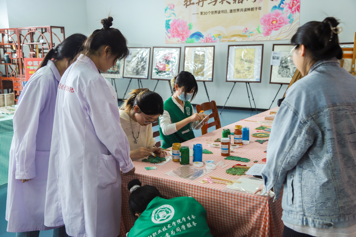 活动现场,戏曲艺术学院学生表演了精彩的扇子舞《醉春风》,为观众带来了一场视觉与听觉的双重享受;元宇宙文学互动、智能机器人、VR虚拟展厅等前沿科技在数智图书馆中完美展现,让读者沉浸式体验未来阅读;古建筑数字建模、3D打印、无人驾驶小车等“黑科技”展现了洛职学子的创新实践成果;非遗剪纸、缠花、拓片团扇、创意书签、琉璃彩绘等非遗体验区人头攒动,吸引了众多师生驻足创作;本草咖啡、中药香囊、中医推拿等特色项目以“药香伴墨香”传递健康理念;“大国工匠风采”专题展、古籍唐诗散叶展、考古修复作品展等展览彰显着职业教育与文化传承的深度融合。
