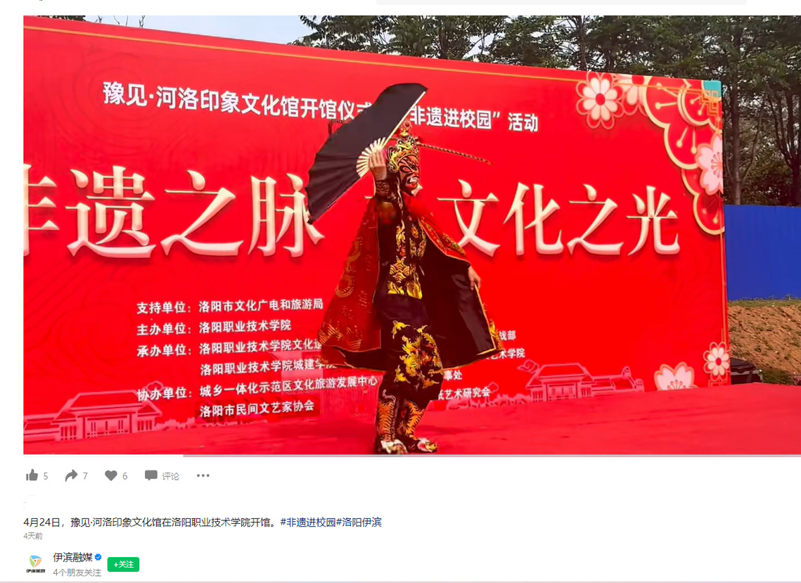 伊滨融媒:4月24日,豫见·河洛印象文化馆在洛阳职业技术学院开馆。