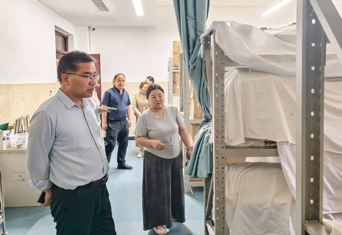 在护理与康养学院,副校长张志友深入模拟重症监护室、学院仓库、资料室、心理咨询室、办公室等各个场所,认真查看实训设备日常管理情况、消防设施运行情况,了解安全制度执行情况,排查消防安全隐患,确保学院各场所规范用电,杜绝安全隐患。