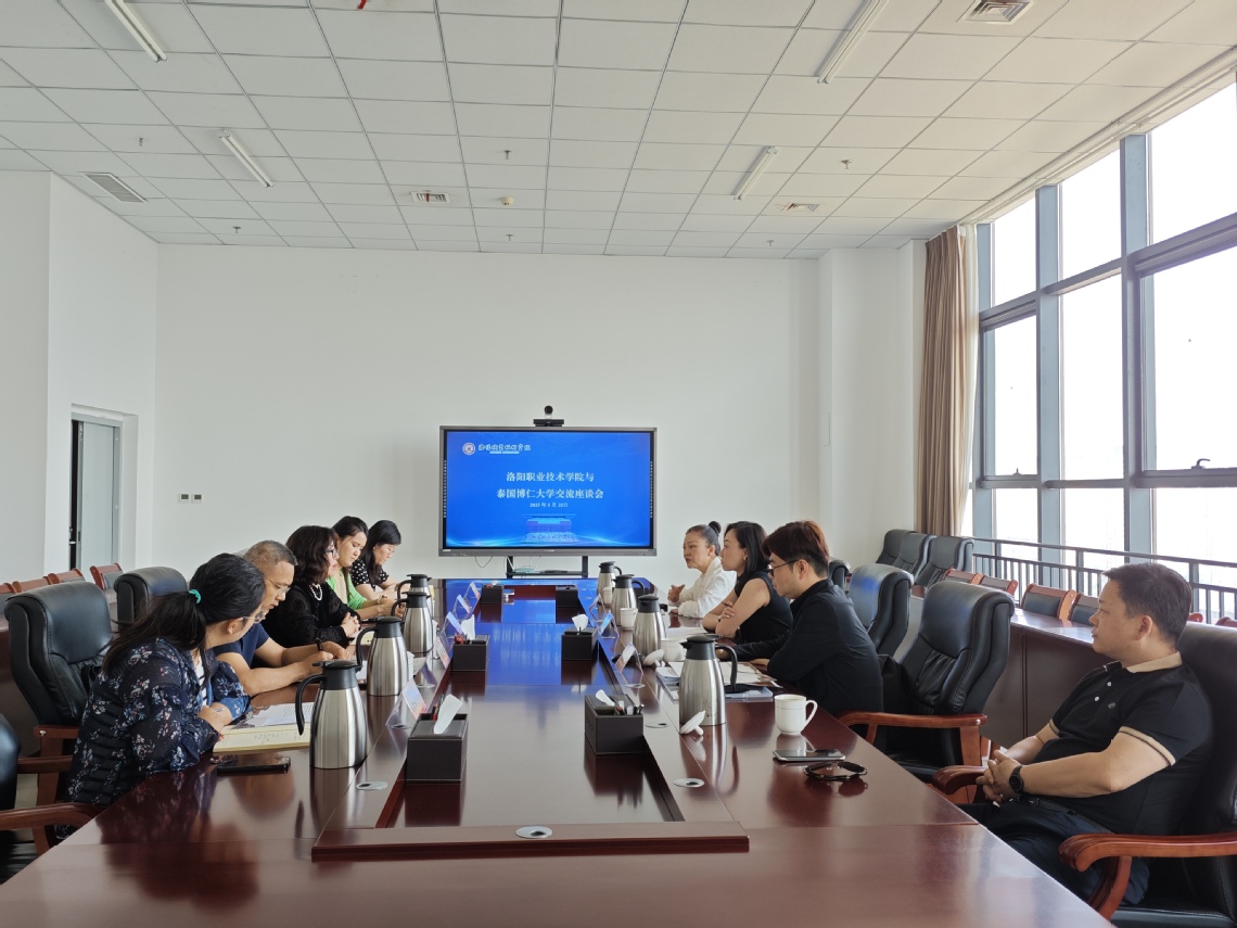 国际学院院长陆敏介绍了我校在国际教育、国际人文交流及国际化产教融合等方面所取得的成果,着重分享了学校依托古都洛阳深厚的文化底蕴与非遗特色打造国际研学旅游项目的实践。王珊珊介绍了泰国博仁大学的办学特色、专业优势、国际合作项目开展情况等内容。