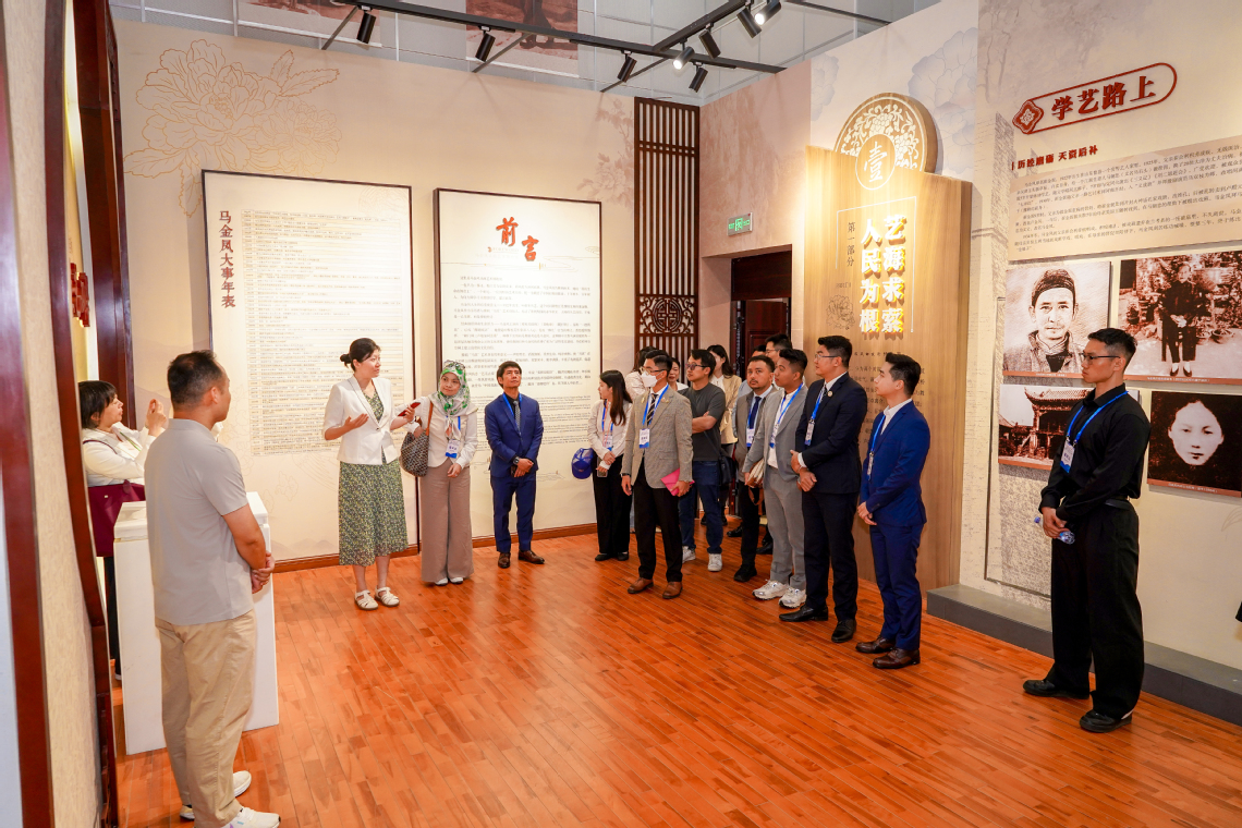 在马金凤戏曲艺术博物馆,这些来自东盟国家的国际友人在讲解员的讲解下,详细了解了洛阳职业技术学院终身教授、豫剧大师马金凤先生的生平事迹,并在豫剧工坊聆听了戏曲艺术学院学生现场演唱的豫剧经典唱段《穆桂英挂帅》选段,嘹亮的唱腔和精彩的表演,赢得了大家的热烈掌声。