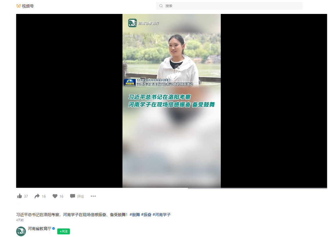 河南省教育厅:习近平总书记在洛阳考察,河南学子在现场倍感振奋、备受鼓舞