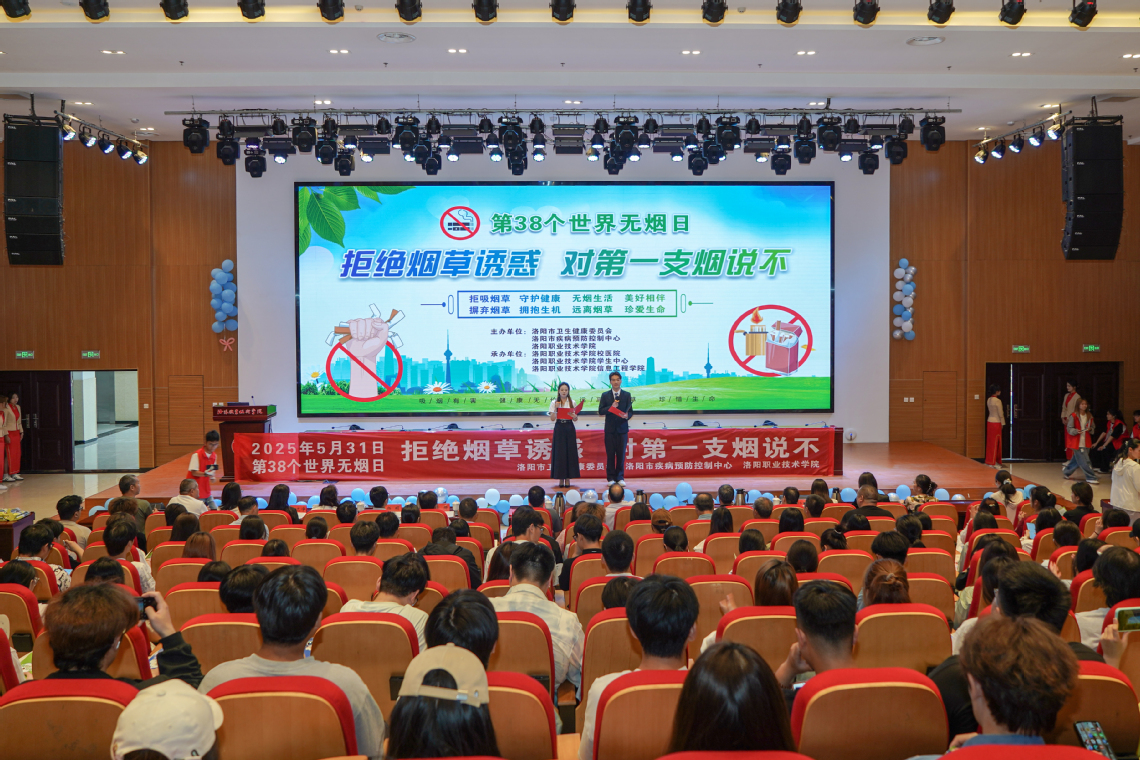 5月29日下午,由洛阳市卫生健康委员会、洛阳市疾病预防控制中心、洛阳职业技术学院联合主办的第38个世界无烟日活动在大学生活动中心开幕。洛阳市疾控局局长、市卫健委党组成员、副主任刘龙庄,洛阳市疾病预防控制中心党委副书记龚勋,我校副校长张志友出席开幕式。