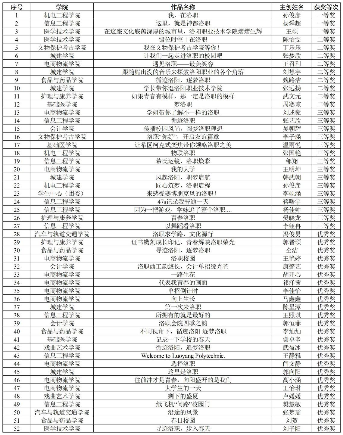 自《关于举办第五届校园短视频比赛的通知》发布以来,学生中心将各学院上报的参赛作品进行汇总后,5月28日,评委老师结合作品内容以及播放量、点赞量进行综合评审,并将评审结果进行公示,公示期内无异议。本次比赛共评选出52件获奖作品,40名优秀指导教师,2个优秀组织单位。现将获奖名单公示如下。
